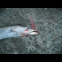 この日は、朝一ヒラメ狙い→撃沈。午後からロックフィッシュ狙い→撃沈。このままでは帰れない!(汗;)と、日が落ち始めた頃にカッティングベイト2インチ(ジグヘッドにて)を投入。水深・・・