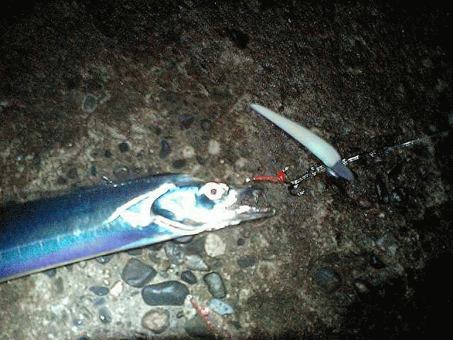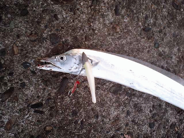 シケも収まりかけて久々の朝練です。シケの影響が少ないと思われるポイントへ出撃するが、昨日と風向きは違うが相変わらず風は強くやんわりワインドがし辛い状況。キャストし続いていると潮の切れ目でもないのに微妙な違和感が有りマナティーを確認するが噛み跡は無し。でも今の違和感はタッチーに間違い無いはず!と自分に言い聞かせて同じレンジをダートのピッチを変えながら狙い続けると「ゴン!ジュィ~ン」とヒットです。久々のタッチー独特のこの引きはたまりませんです。このポイントでタッチーが釣れると言う事はあの場所でも釣れるのかな~