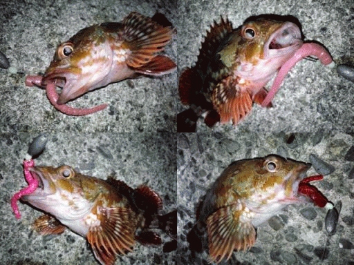 フォール中でのコン!と言う当りも出始る様になり、アジに限らず根魚も当りが渋い時ほどカラーは重要!を思い知らされる。