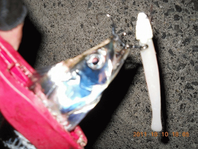 最初のアタリは18時の底でしたが乗せることができたのは1本のみで絵に描いたような基本的なシャクリでした。その後、地合の時間と潮止まりが重なって全く生命感の無い海に変化し、潮が動くまで1時間、じっと我慢していましたが計画時間が過ぎてしまい、「残り5投」と決めて2投目にHIT!