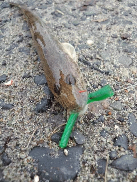 マゴバチをセットしボトムをズルズル..ぷるっ!小気味良い引きがロッドを伝わって来ます
