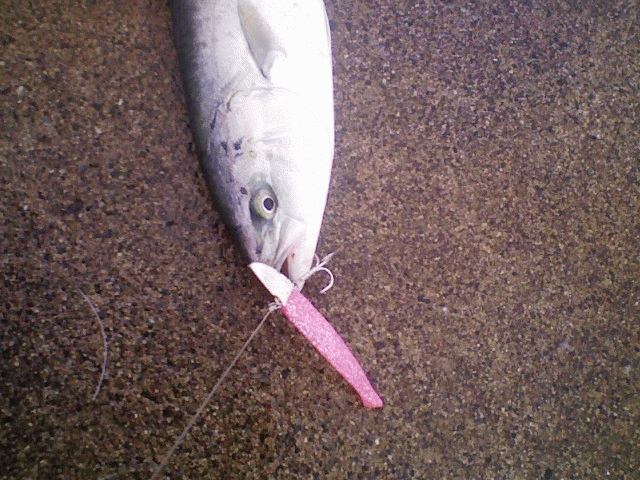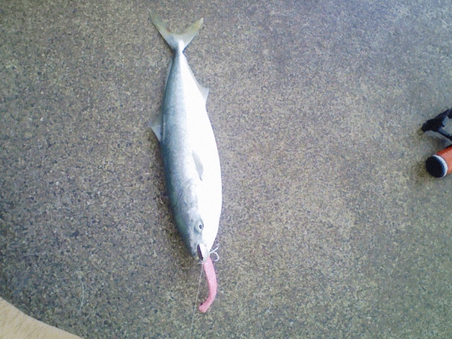 うねりと風で、非常にやりにくかったのですが、一番乗りでゲット!!最近、ナブラは立つが当たらないとか、全然気配なし、みたいな日が多かったので、入れ食いとはいかなかったものの、この状況でなんとかゲットできてよかったです。最近、お昼頃が入れ食いタイムだとか隣の人が、言っていたのですが、雲が怪しげなので、早々に引きあげました。