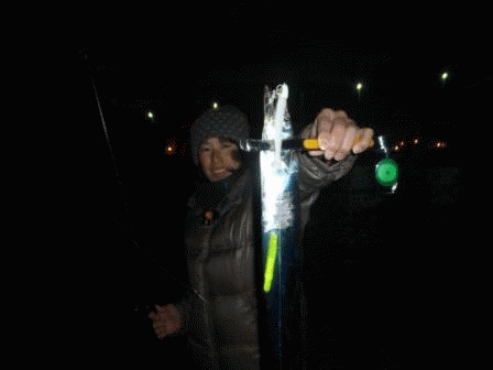 4時半くらいに彼女にグンッと強烈なバイト!ドラグも少し出てやりとりしてあがってきたのは指3.5本ほどの良型のタチ()ウオでした!
