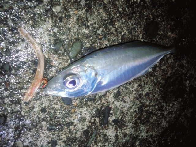 今朝はどのレンジにアジが付いているかな?と考えながらとりあえず中層付近でリトリーブを始めると速攻でヒット。