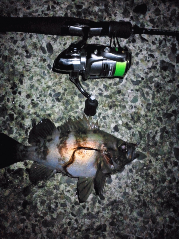 潮色が途中から雪代が入り微妙だったが信頼性のあるレッドグリッター!雪代が迫って来てるということはある意味潮が入ってきているといいこと。ならばチャンス!着水と同時にスローリトリーブ。ヌヌッと重くなったので引き合わせしてズーン(≧▽≦)尺アジゲット!その後も中アジをゲットした( ´艸`)今回『持ってるなぁ』と思ったのはキャストした後にズボンの紐を結びなおしてさぁやろう!と思って竿を持ち上げたら…!?引く!?おぉ!しかもドラグが出るぅ(゚Д゚;)てなことで25ちょいのマッスルメバル!…え?棚はどこだって?大体、ズボン軽くおろしてシャツ入れて紐結びなおしてベストカチってしめた頃です(●´∀`●)