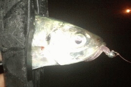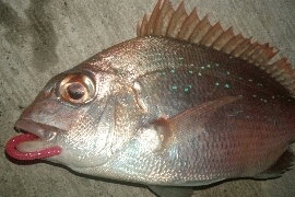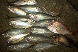 連休中、満足な釣りが出来なかったので今日行ってきました!月明かりのせいか、開始から一時間程アタリが無くいろいろ移動しながらアジを探していました。マゴバチを潮にのせフワフワさせていると、今日の初アタリ! 重量感があったので、メバルかなと思ったら小ダイでした。その後アジの居る所を見つけ、無事アジを釣ることができました。