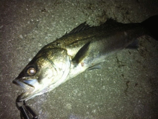 3インチ+5gジグヘッドにチェンジして水面下50㎝をイメージしてリトリーブすると一投目で出ました♪この組み合わせ強風時にはお勧めです!