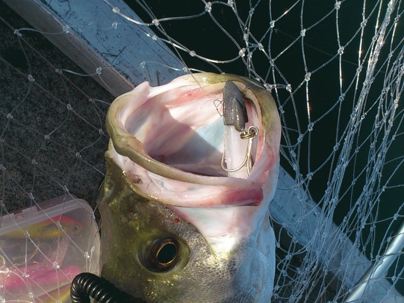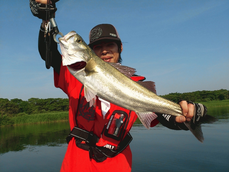 今日は友人からボートを出してもらい、リバーシーバスを狙いに行ってきました。早朝は巻物で狙うも無反応。日が昇り水温が上がったあたりで選んだポイントは地形変化の無いフラットエリア。そこでマナティーに変え、波動を使い広範囲に調べようとした一投目で「ゴン!!」エラ洗いは無いもののナイスファイトで上がってきたのは60くらいのシーバス!!あまりにも狂っていたのかマナティーをばっくし咥えていました。その後も2度ヒットしたものの痛恨のフックアウト(泣)そして最後にダメ押しのオチビちゃんゲット(汗)しかしその後は気温、水温とも暑くなり無反応になり終了になりました。思った以上の高反応に思わずボートがほしくなったいっくんでした(笑)
