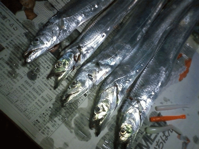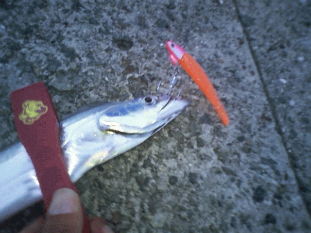 5番と6番のちょうど真ん中ぐらいになんとか釣り場を確保。ZZ-Head 1/2oz.+MT-K4で16:00スタート!まずはサーベルアシストを付けずサゴシを狙ってみました。30分後ぐらいに明確なアタリを捕らえた。横に走るのでサゴシと確信、しかし、抜き上げるときにバラシてしまいました。その後タチウオ狙いに変更し、17:00ぐらいにレギュラーサイズを捕獲。ラッシュはないが、ポツポツとなんとか5匹釣ることができました。