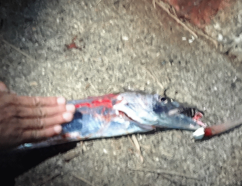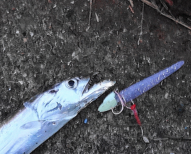 今年2回目のワインド講習会参加、武庫一6西に渡りました。前回はボーズだったので、今回はと気合をいれてしゃくっていると、小林大将から「ロッドを握りしめないで、ごく軽く持つように」とアドバイスを受け、やんわりしゃくっていると、午後6時ごろに初ヒット。続いて2匹目をゲット、3匹目がかかり、寄せてくると岸際までなかなか寄って来ず、なんとか岸に寄せてラインが切れないか、恐々ロッドを上げると、なんとドラゴン級。初めてのドラゴン級だったので、とても感動しました。
