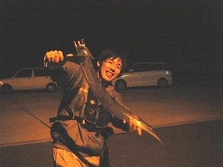 で、今日のパターンはコレでした!!ラインスラックをいっぱい作ってからバッチーーーーンと思いっきりワームが跳ねるように超強シャクリを入れると無茶苦茶に釣れる!!他のシャクリでは反応しないタチウオがこのシャクリでは一斉にスイッチが入ってワームに襲い掛かる状態!!ワインドでスイッチが入っているのが簡単にイメージできるような状況です。ガッツーンでばれてまたあたってバレテ、次の思いっきりシャクリでまたヒットしてゲット!!