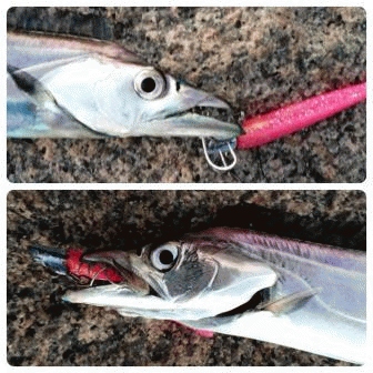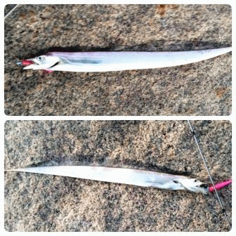 その10分後、目の前に潮目ができてきたので潮目を越してマナティを投入して10カウント後にシャクリ始め、5シャクリ目で来ました!2匹目ゲットです!