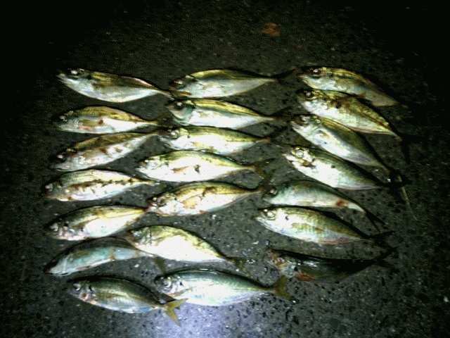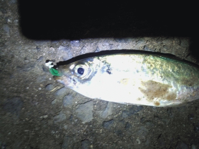 泉大津の有名な大アジ(中アジ?)サビキポイントでたまたま激戦区である常夜灯前がキープできたので、地合いの20分間ほどアジング敢行です。