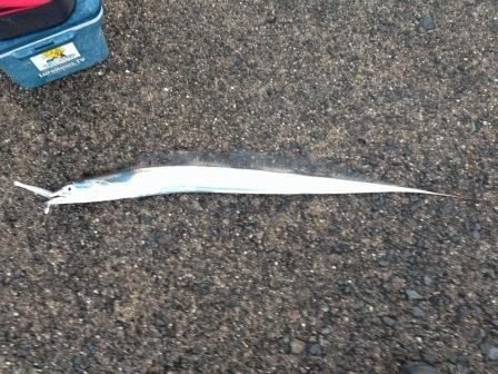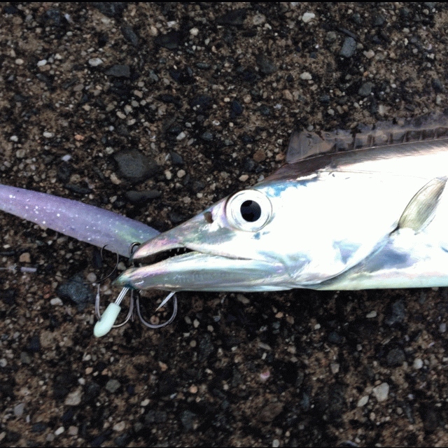 ガツンというよりも、マナティに何かが触れたような感触でしたがタチウオと信じて合わせたところ、本日1本目のタチウオでした!!