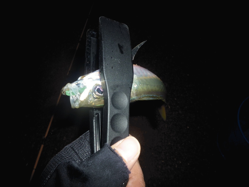 ポイントに着くとタチウオ狙いの方が数人おり、端っこの方でキャスト開始です。
