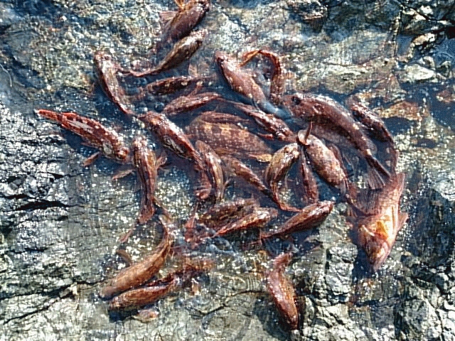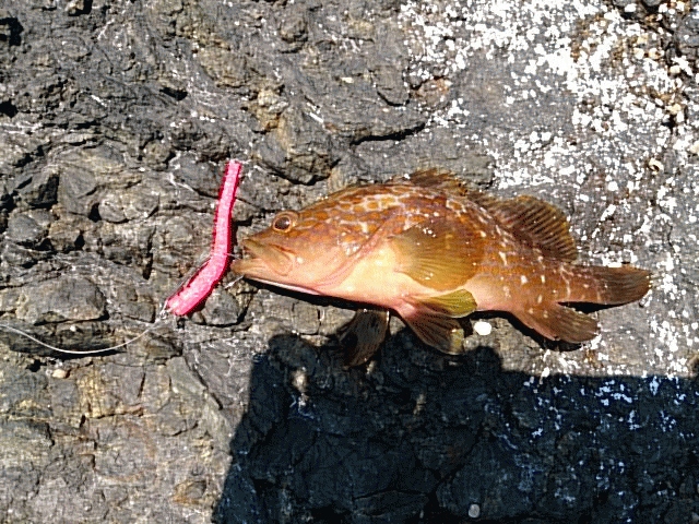前回、藻が多くて苦戦したボイントに再度釣行しました。かなり藻が少なくなってましたので探れるエリアが増えています。前回と同じく、11時30分から16時40分までの熱中症必至の真っ昼間釣行、キジハタ2匹、カサゴ28匹の合わせて30匹の結果で、頑張った甲斐がありました。