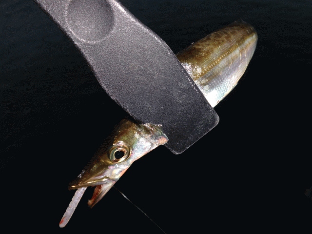 これで回遊のある表層を中心にダートさせ、捕食スイッチを入れる戦法。