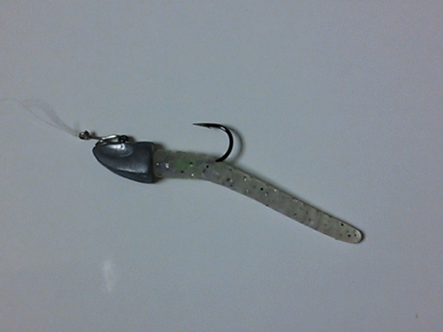 カッティングベイト2inchを3節カット、これをダート系ジグヘッドにテールを反らせてセット。