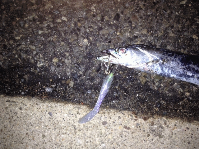ただこの後が続かず、陽が暮れてからは匠魚 TK-K3 ケイムラ・ファントム/シルバーラメ75のケミチューンにチェンジして、表層直下をワインドで探っていると、セカンドヒット。