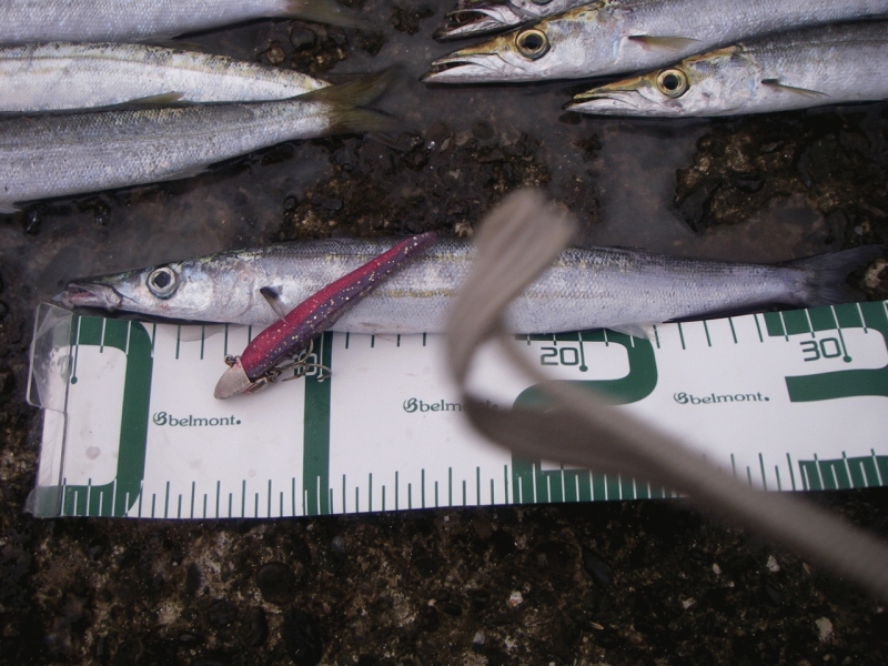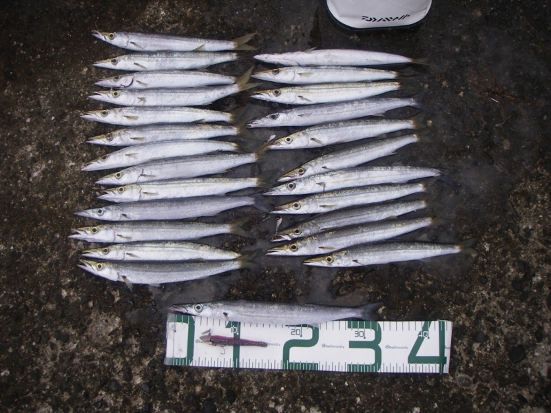 北東の風が強い中、釣行、しかしダメ・・・静かな港の中で、ボトムワインドを使ってみると、カマスが入れ食い、楽しい時間をすごすことができました。25匹釣ったところで、飽きて帰宅、お腹すいたので、ご飯を食べて仮眠、また夕まずめに備えます。あ~でも、この魚、近所にくばるのが、あと一仕事です。