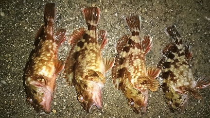 潮が澄んでいたので、マルチフラッシュへカラーチェンジ。あとジグヘッドを2gから1.5gへチェンジし、スローなシャクリでボトムを意識しての一投目。早速20cmのガシラちゃんが乗ってくれました。そこからたて続きに、3匹追加。