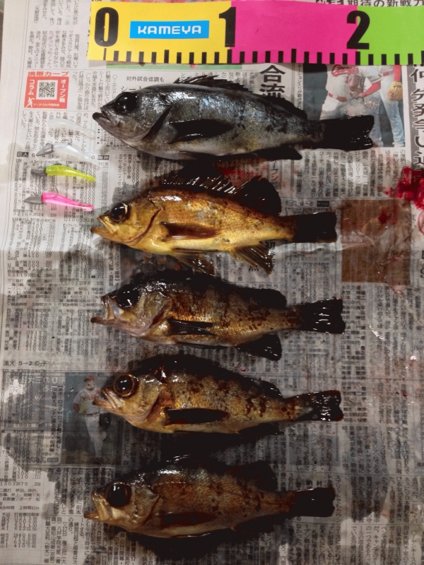 上がってきたのは19cmの金メバル。