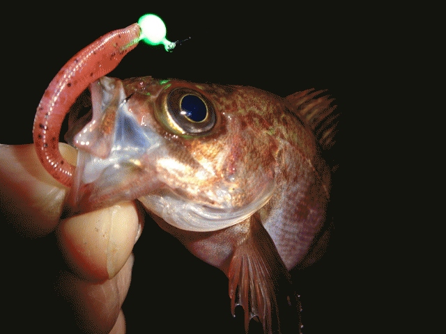秘策は…、ジグヘッドをグローにして逆光を利用。