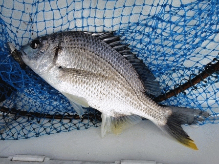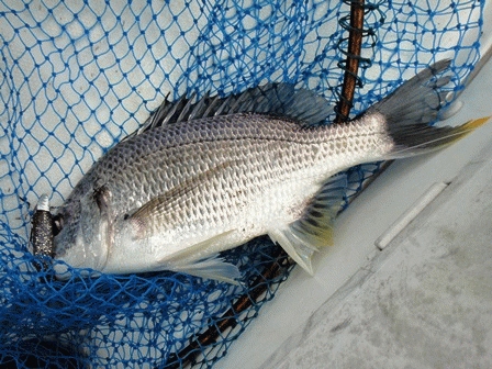 強い引きのやり取りを楽しんで、良型のキビレをキャッチしました。