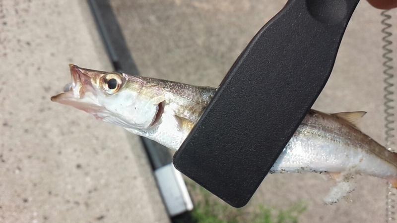 遠投してライトワインドをしながら誘うと、何回でもアタリがあるのですが、カマスのサイズがまだ小さく、なかなかフッキングが出来ずタイミングを合わせるのに苦労しました。