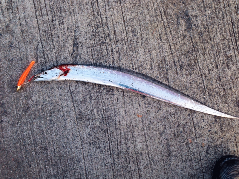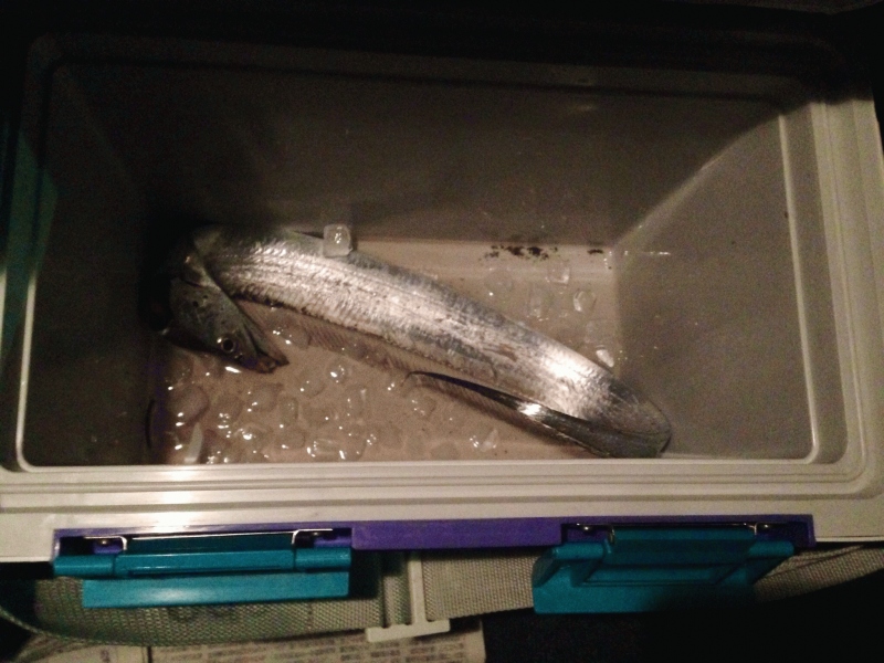 追いアワセを2.3回入れ無事にキャッチしたのはF3サイズの太刀魚。