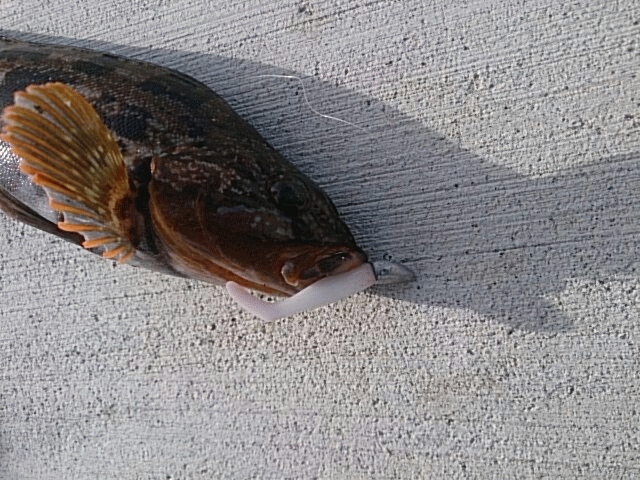 今回はワインドシャッド40でライトロックをしてきました。どのようなシチュエーションでも効果的ですが私的には潮流の速いポイントで特に使用頻度が高いワームです。テールが流れを受けてウォブリングする為、フォールスピードも必然的にゆっくりになり潮流に馴染み自然なドリフトを簡単に演出することが出来ます!またワインドをするとテールが抵抗になりメリハリのついた小気味良い、幅の狭いダートをしてくれるのもワインドシャッド40の強みです。今回はワインドシャッド40のみ使用、約4時間の釣行でアイナメ27~35㎝×11匹、メバル15~21㎝×7匹、ベッコウゾイ30~34㎝×2匹と釣り上げる事が出来ました。