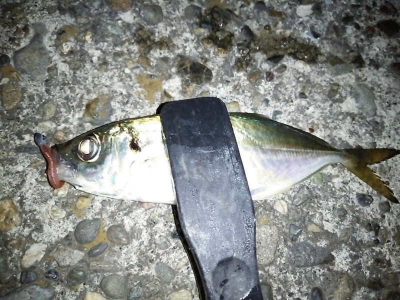 定番の場所へ・・・北風が強いので、JH1.5グラムにシュリンプを装着、開始1投目。カウント10で違和感が・・・軽くアワセると20cmのアジでした。その後同じパターンで15匹追加し、この日は終了!風が強いと、繊細なアジングは楽しさ半減しますね・・・コバチのシュリンプに助けられました。