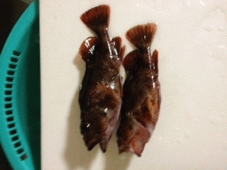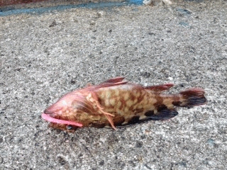6番方面も一杯で西方面が若干空いてたのでクーラーボックスを置いてスタート。同僚は内向き、自分は外向き側をチェック。空も明るくなってきたので釣れてるか確認しても誰も釣れていない様子なので、ガシラ狙いに変更。内向き、外向きケーソン継ぎ目をダウンショットリグで狙いますが、これまた沈黙。ようやく別の渡船屋さんの手前側で一匹。食いが渋いのかまた沈黙してようやく外向きで良型ガシラヒット。