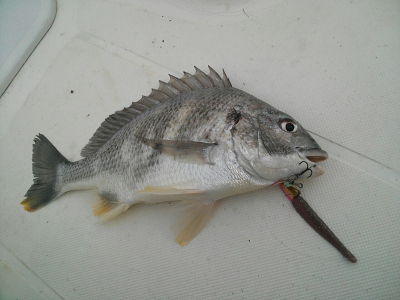 開始早々、友人と自分に1枚づつナイスサイズなキビレがヒット。
