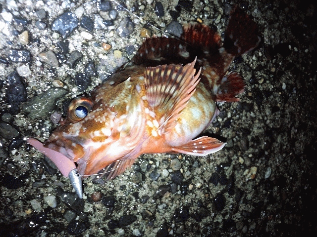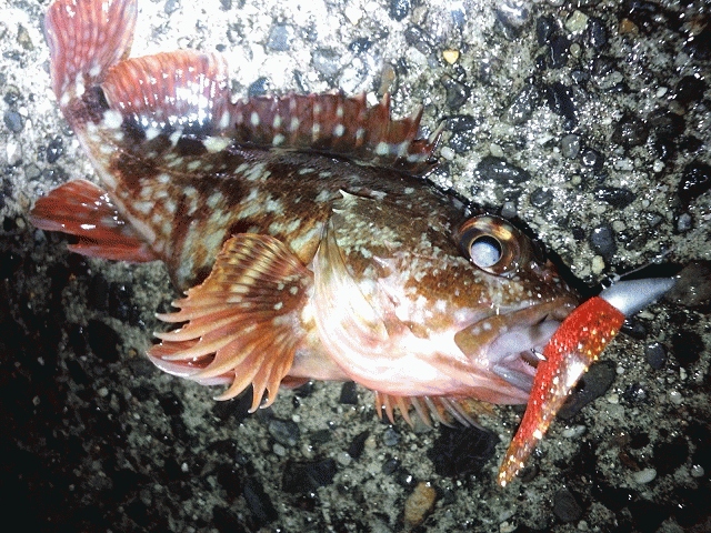 冷たい雨が降っていたが、このままでは帰れないのでマナティー38でボトムを探りカサゴ狙いに変更。