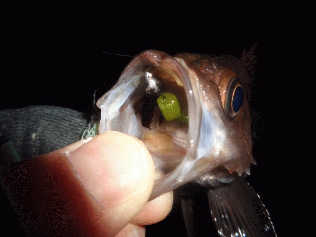 ポイント到着と同時に常夜灯下でメバルのライズが始まる絶好のタイミング。