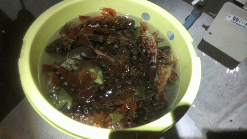 周りで、ポツ、、、ポツ、、、とメバルが釣れたので、再度、マナティ38グリーンスペシャルで、宙層狙いましたが、噛み合わず、底に着くと、またガシラ。