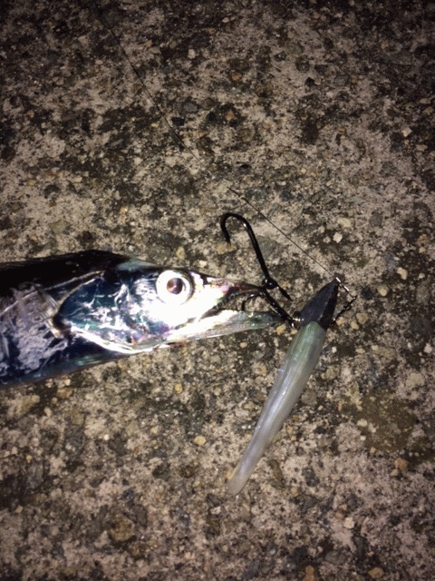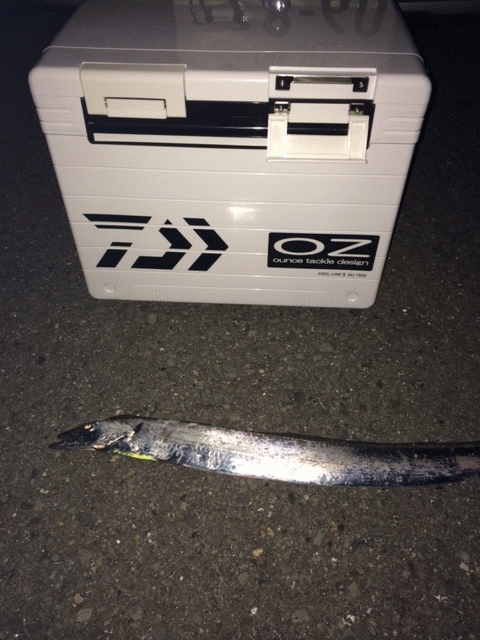 和歌山のタチウオ調査に。18時半よりZZヘッド5/8oz + マナティー90mm KPF でスタートするも、アタリも無く時間だけが過ぎていきます。日が暮れてマナティー75mm K2 に変更しスローにシャクリ、フォールを入れながら誘っているとヒット!その後は匠魚などで狙いましたが、この1匹で終了でした。