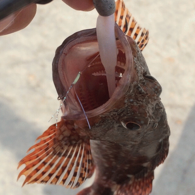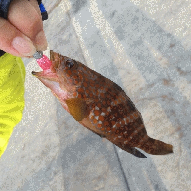 夕まづめになって相棒がマナティ38のピンクグリッターでアコウをget。その後もケイムラクリアーピンクでアコウを追加。