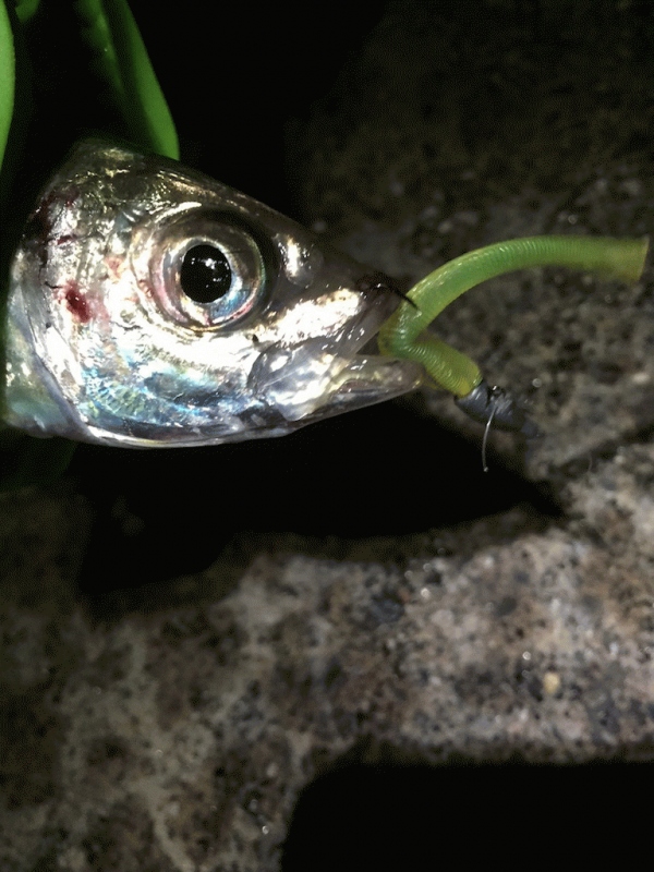 日が変わって人気の無いポイントに入ると、一面小さなサヨリの群れが!