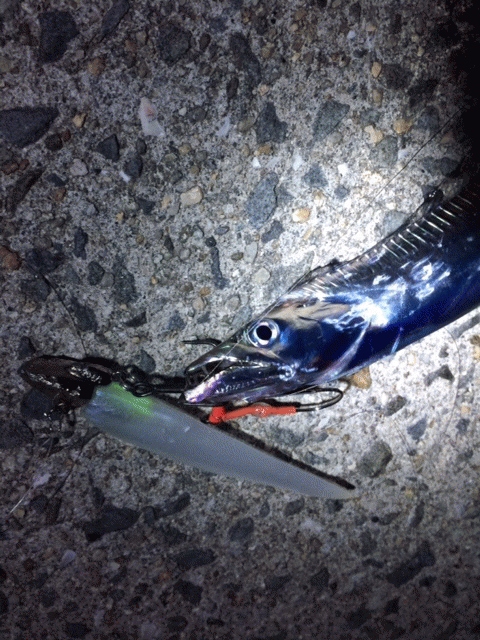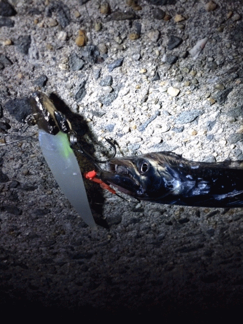 今年初のワインドです。23時頃から始めたんですが,全くバイトなし。日が変わって2時くらいからショートバイトが出るようになってきました。でもなかなかのらず。なんとかゲット出来たのはまだまだ小さめのタチウオでした。人工島はこれからかな。