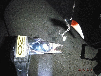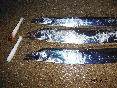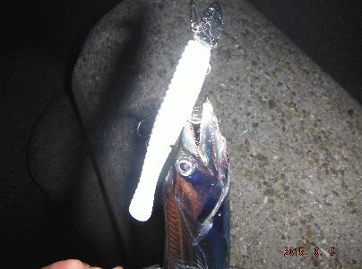 そんなことを考えながらシャクッていると、上層で「ゴン」!でもゴミ?って思うほど軽い。指2本サイズでしたがMANATEE86で初タチウオGET。