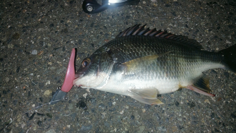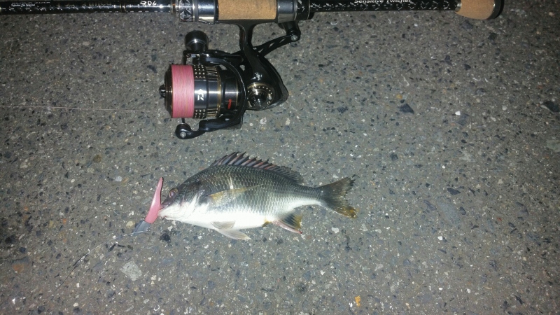 いつものポイントで仕事前にちょこっと釣行。 ド干潮1時間前やったのでかなり潮が引いてました。手前10メートルにキャスト、2.3回の軽いしゃくりで誘いながら手前3メートル当たりでコンコン、ゴンと言う当たり!かわいいサイズのキビレちゃん。会いにきてくれてありがとう!おかげで仕事頑張れました。