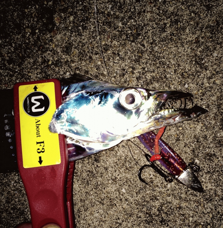 強めのしゃくりで沖の表層でミスバイト、すぐに強めのアクションでスイッチを入れ弱いしゃくりに変えてスローにするとヒット!