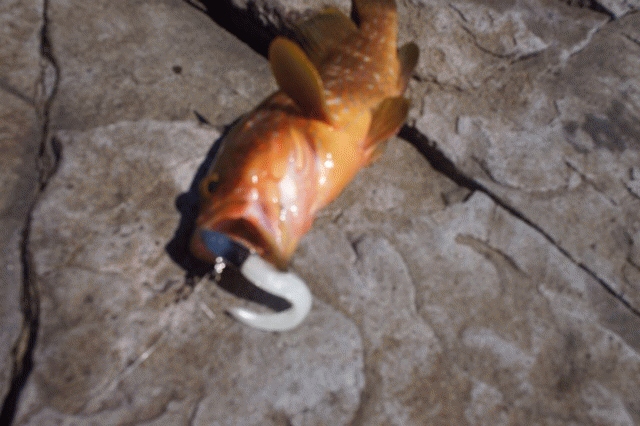 ワインドでボトムをとりワンピッチワンジャーク。さらにボトムへのフォール中にバイト!このパターンが多いですね