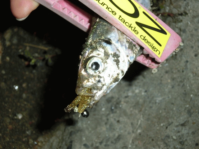 潮の流れが速すぎてボトムが探れずシンカーを1.2gにチェンジ。