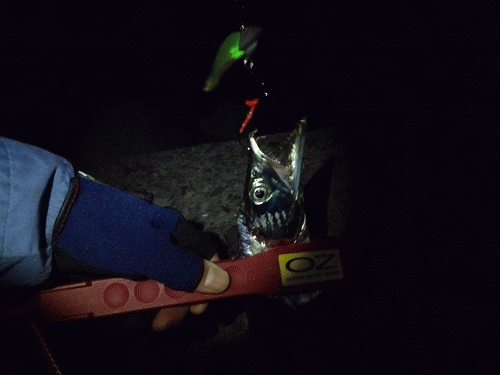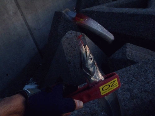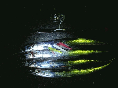通い続けてやっと太刀魚の声が、、、とにかくうれしい。長い秋雨も上がりとうとうわが町にも到来です。17時前にもかかわらず釣り場は満員状態。うきうきで用意し8分の5のZZヘッドでキャスト。今日は風が右から左にすごく強く夜にかけて満潮を迎える為かなりやりにくかったです。ですが昨日の浦さんの配信のおかげでしゃくり方に気をつけて投げていると見事なアタリが、、、最近の流行のレッドヘッドにて1尾ゲット。すかさずチャートにカラーチェンジして2尾目ゲット。その後ポロリが続き最終はパールにてしめくくりでした。気がつけば20時まで頑張りました。シーズン到来をうれしく思うとともに意気込みも新たにした一日となりました。めざせシーズン100尾!