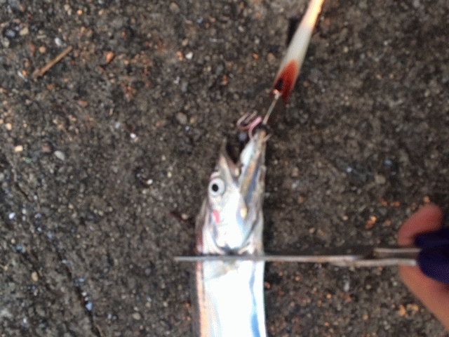 その後も適度に当たり結果タチウオ12匹、アジ1匹でした。