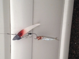 爆風・小雨の兵庫突堤。どうなる事かと思いましたが、マナティーにイワシが複数引っかかる位のベイトの多さ。18時15分~45分の30分間 着水後3カウント前後で9連発。まだまだサイズは小さいですが、今後に期待です!