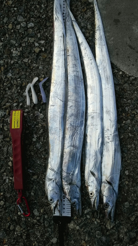 しつこくタチウオを探し、再度、パールホワイトで遠投すると、